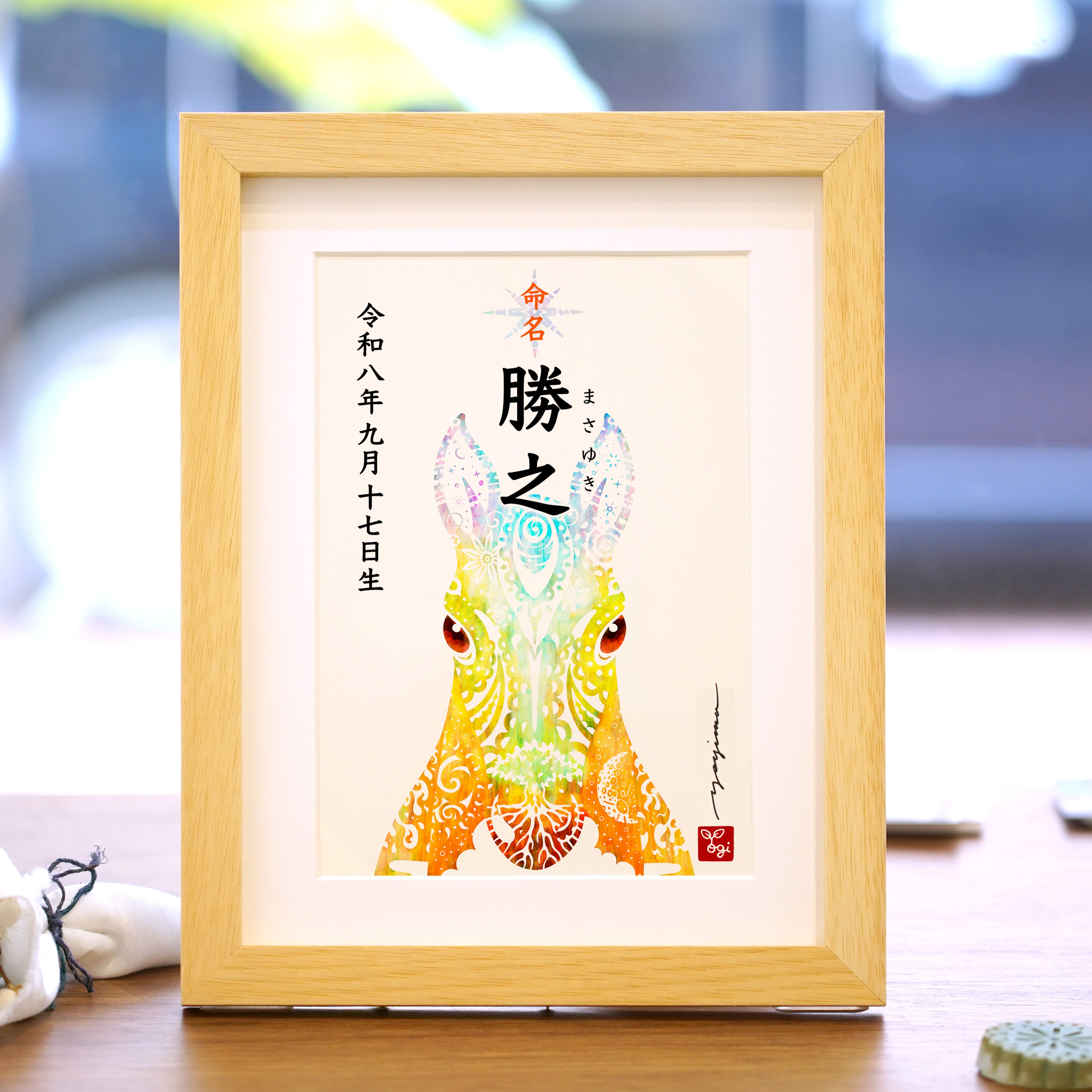 作家の直筆サインを添えて、世界にひとつの命名額をお作りいたします。